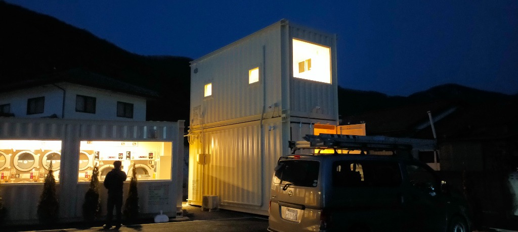 コンテナを利用した カフェ コインランドリー 事務所の新築の電気工事のご依頼を頂き、昨日無事に受電となりました。