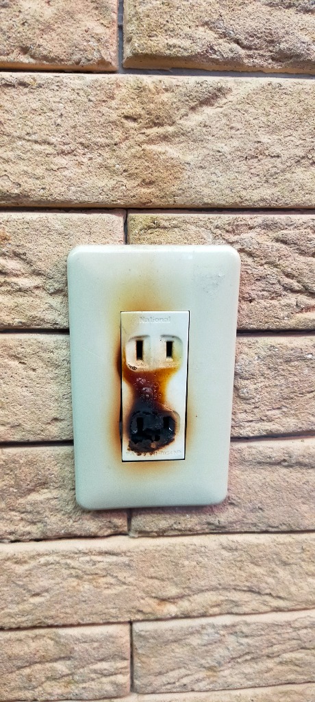 コンセントの差し込み部分が焼け焦げてしまっていました。幸い出火には至らなかった用でなによりです。
